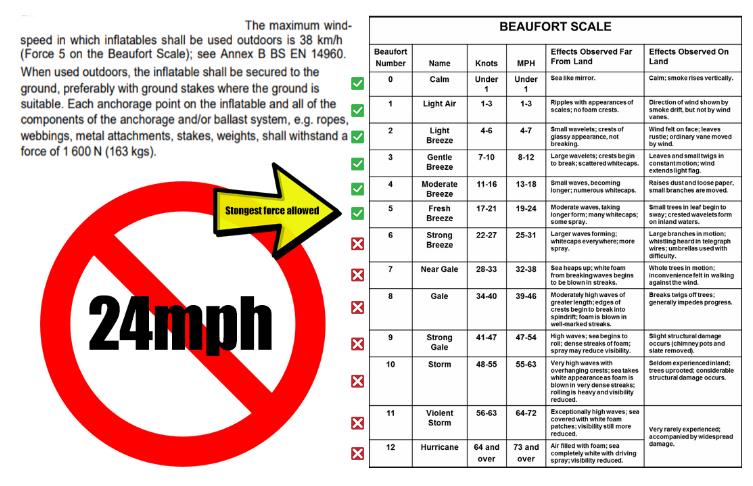 6 - Once you have had no winds, including gusts over 24mph for 1 hour, you may switch the inflatable back on, ensuring no one uses the inflatable until its fully inflated and rigid.