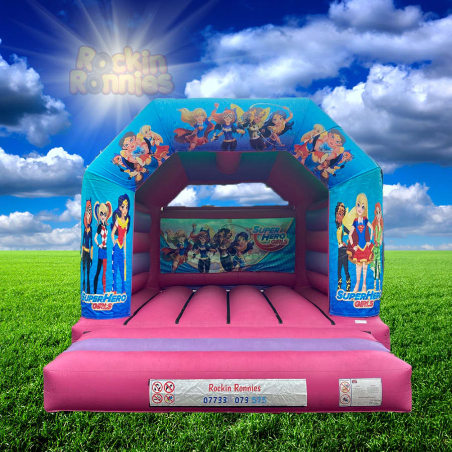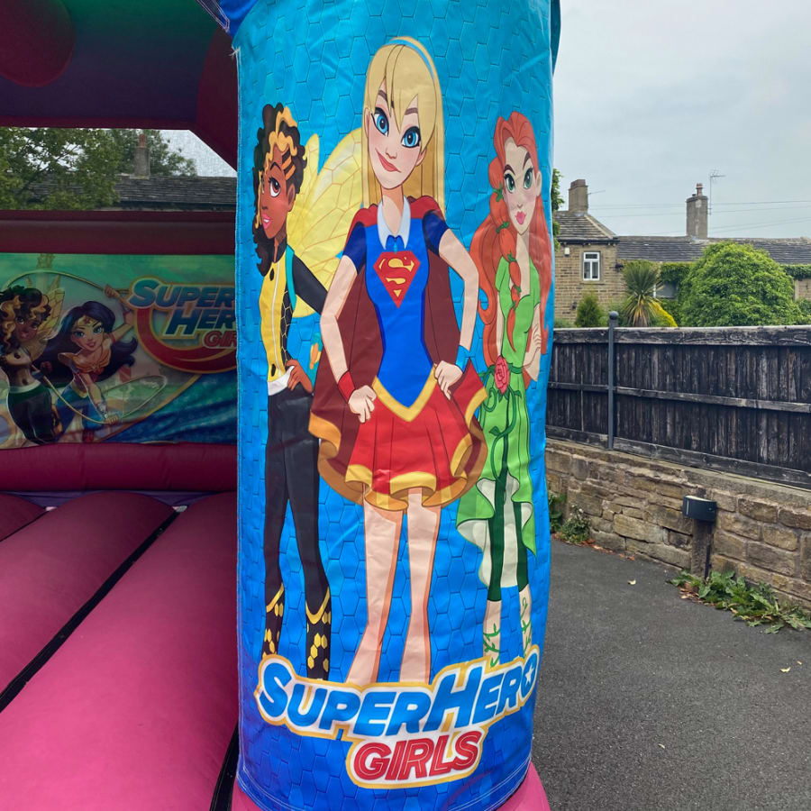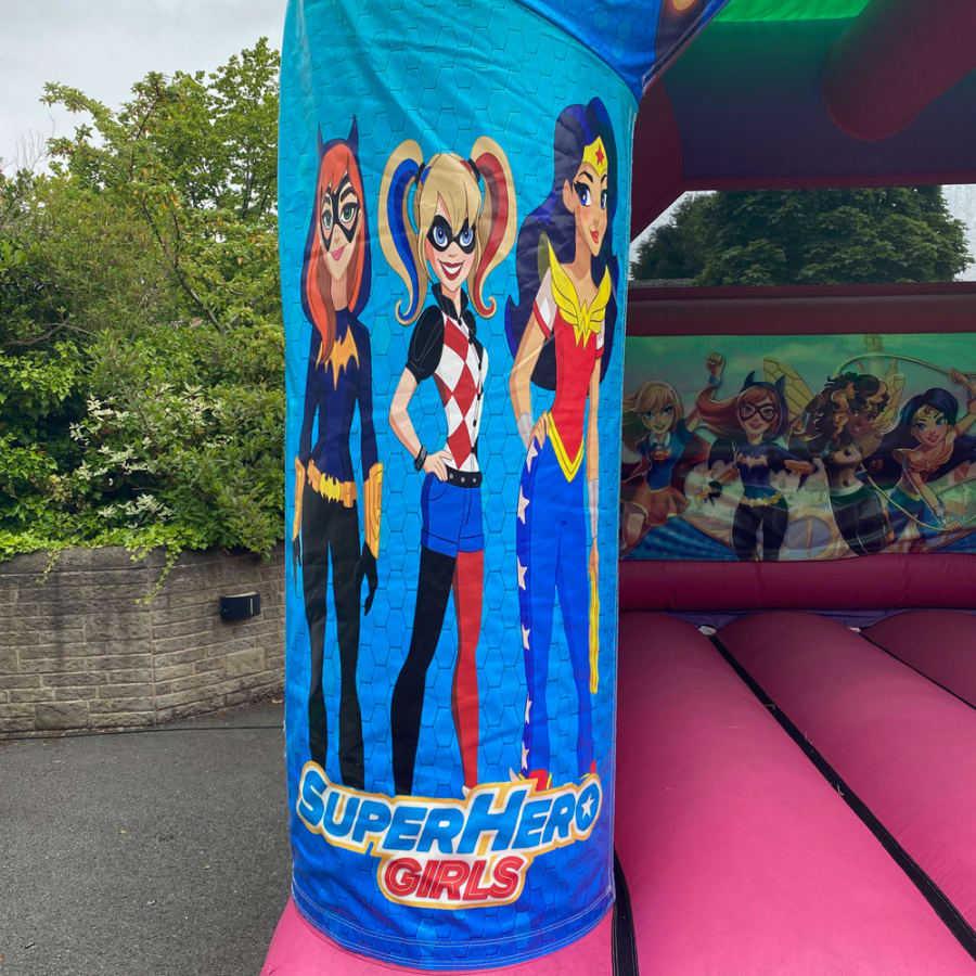 Wow this castle just looks great hero Girls themed bouncy castle that stands out from the rest.