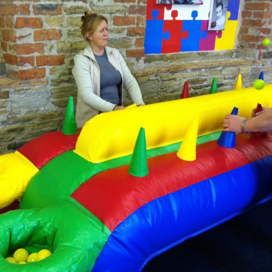 The aim is to get the plastic ball to the end before your opponent you do this by using the cones and passing the ball from one to the next using the air flow. The person or team who manages to move all the balls from one side to the other without cheating wins!