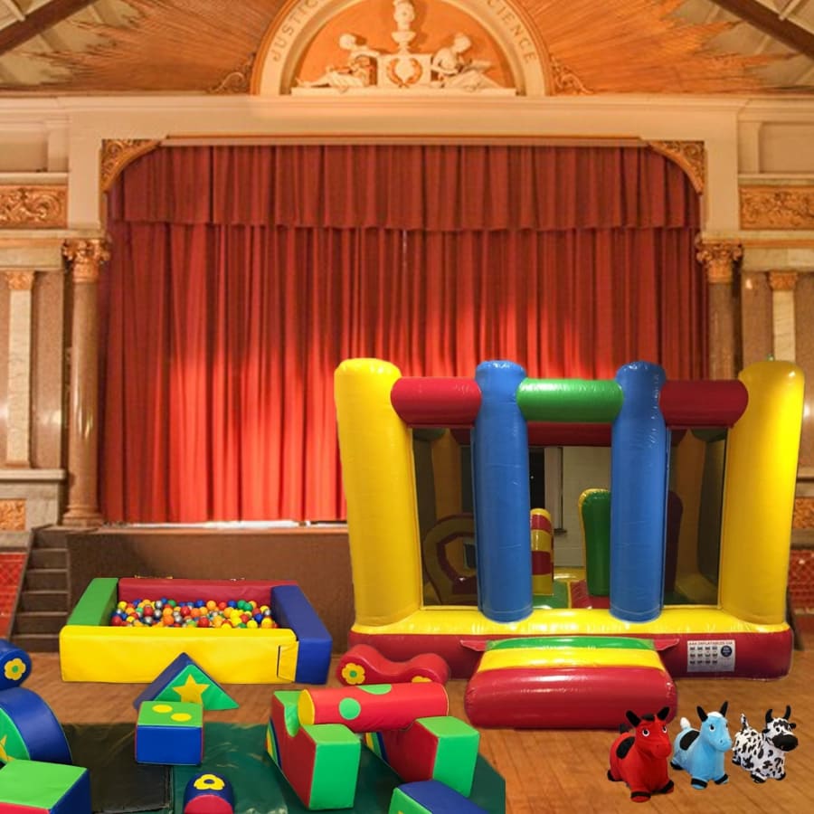 With this package you get a 16 piece set with ball pool. Toddler bouncy castle, happy hoppers and Didicars. Great for the childs party.